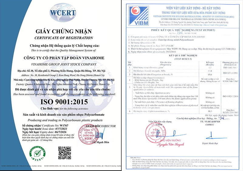 Sản phẩm tấm lợp lấy sáng VinaHome đạt chứng nhận chất lượng