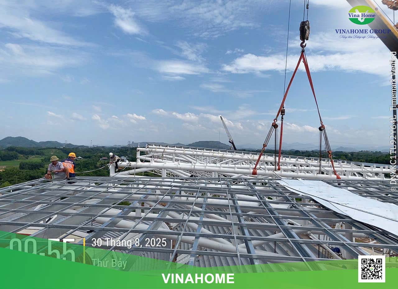 Quá trình thi công mái che sân vận động đã được Vinahome triển khai theo quy trình chuyên nghiệp và khẩn trương, đảm bảo chất lượng kỹ thuật cao nhất.