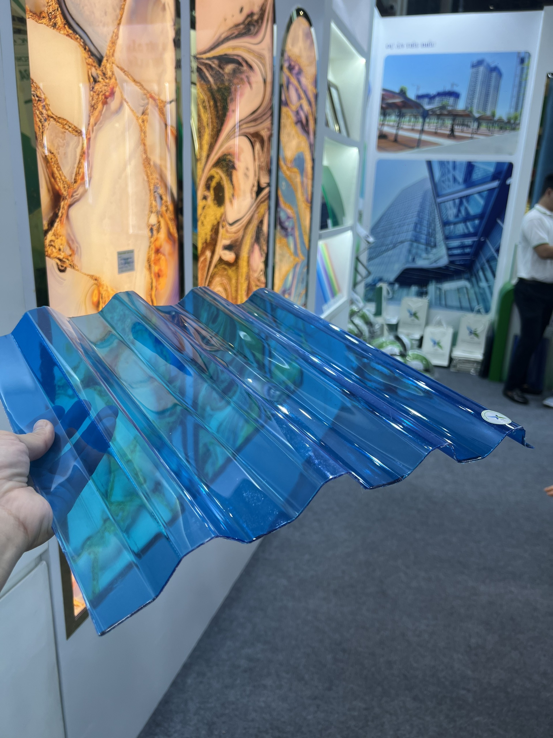 Mẫu tấm Poly dạng sóng được chụ thực tế tại Showroom Vinahome