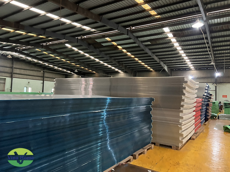Hiện tại, Vinahome là tổng kho tấm lợp lấy sáng Poly rỗng lớn nhất Miền Bắc với sản lượng lên tới hàng chục, thậm chí là trăm tấn mỗi năm. Tại Việt Nam, tổng kho tấm nhựa lấy sáng rỗng ruột Vinahome đã được phân phối trên khắp cả nước đảm bảo cung ứng kịp thời cho mọi dự án, từ các công trình nhà xưởng công nghiệp quy mô lớn đến các hạng mục dân dụng đòi hỏi chất lượng tuyệt đối.
